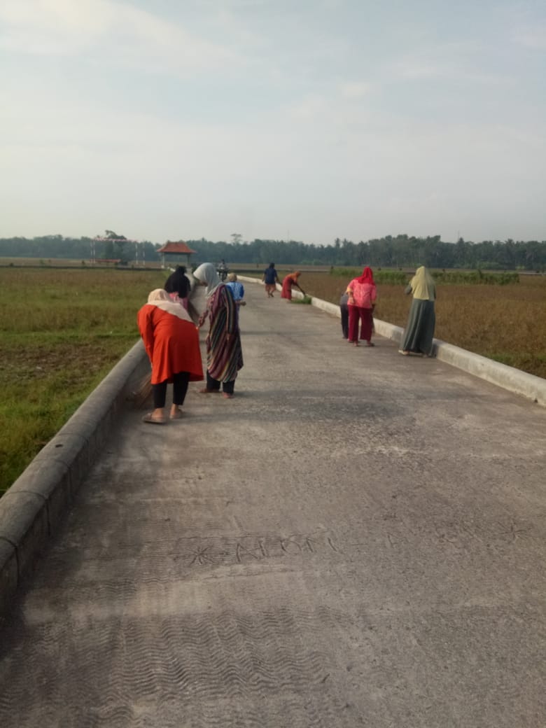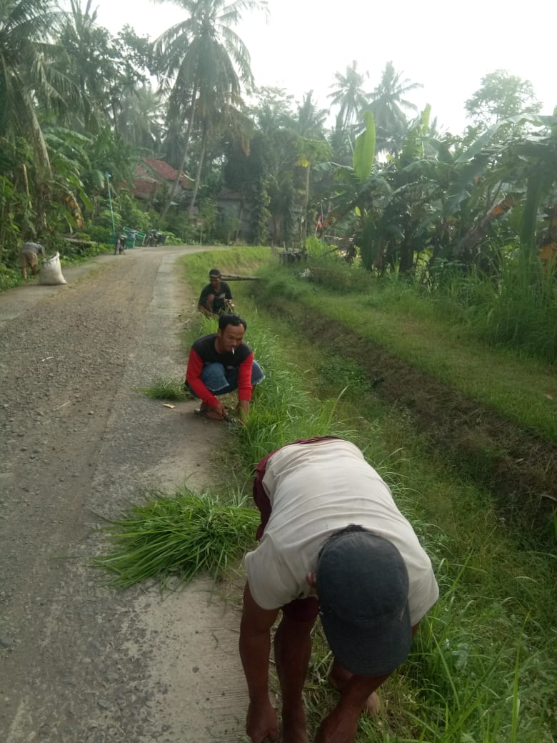 Dikomandoi oleh masing-masing Ketua RT, warga secara suka rela membersihkan lingkungan, dimulai dari lingkungan rumah hingga ke jalan utama desa serta membersihkan saluran sanitas dan irigasi.
